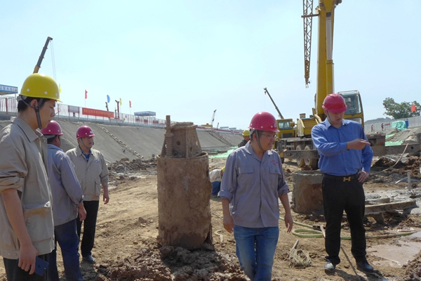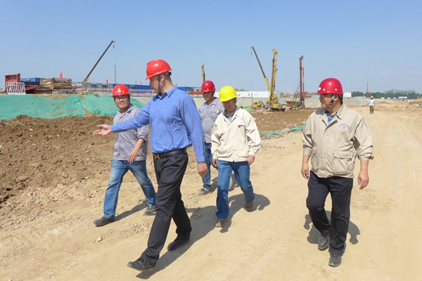 5月16日,沈繽董事(shì)長帶隊到正在軌道交通R1線車輛基地施工的(de)五分公司樁基工地檢查工作。公司副總經理韓民(mín)、質量安全部(bù)長馬傑、辦公(gōng)室劉驍帆、五分(fèn)公司經理袁培民同誌一起陪同(tóng)到工地工作。