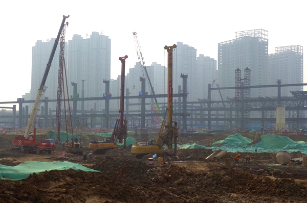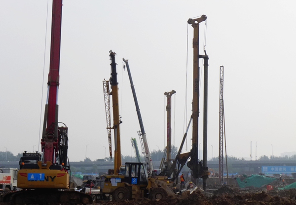 濟南西部會展(zhǎn)中心,占地332畝,其中地上建築22.6萬平方米,總建築麵積55萬平方米,是(shì)濟南又一個地標式建築。圖為我公司正在(zài)施工樁基礎