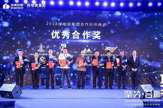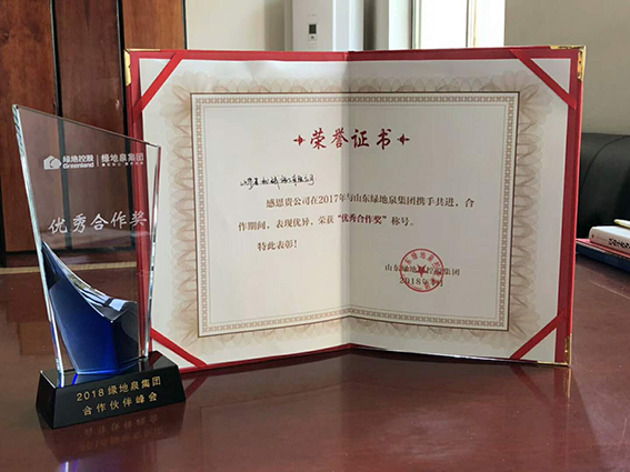 祝賀戰略合作夥伴綠地泉集團授予(yǔ)公司優秀合作獎