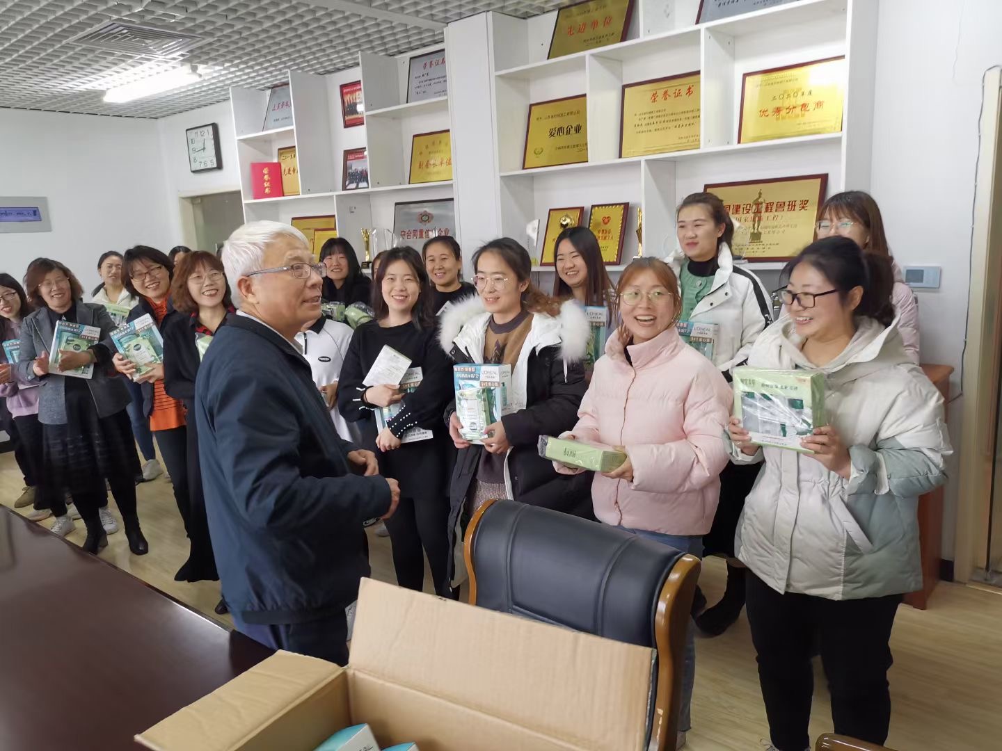 公司周總(zǒng)親自為女職(zhí)工(gōng)們分(fèn)發節日禮物,
