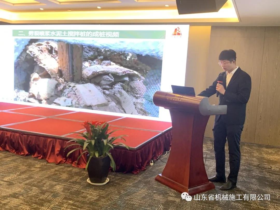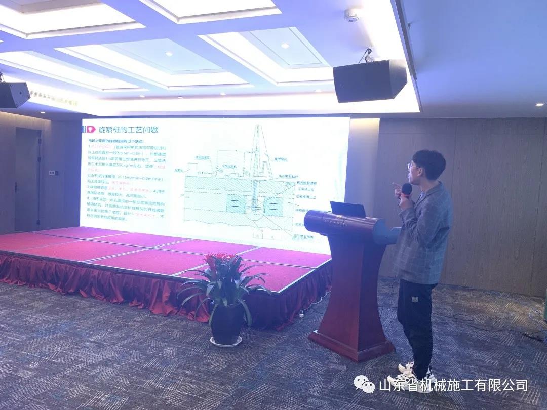 第三分公司(sī)楊戰崗與大家(jiā)分享“鑽噴(pēn)攪”一體水泥土樁(zhuāng)(牆)施工技術