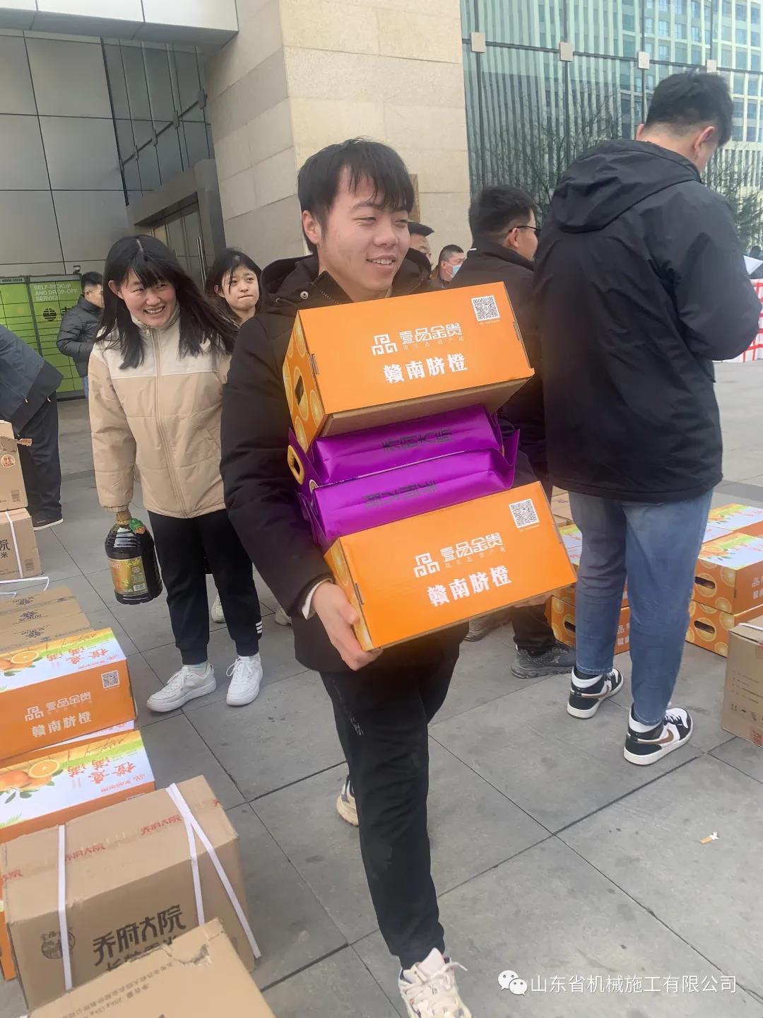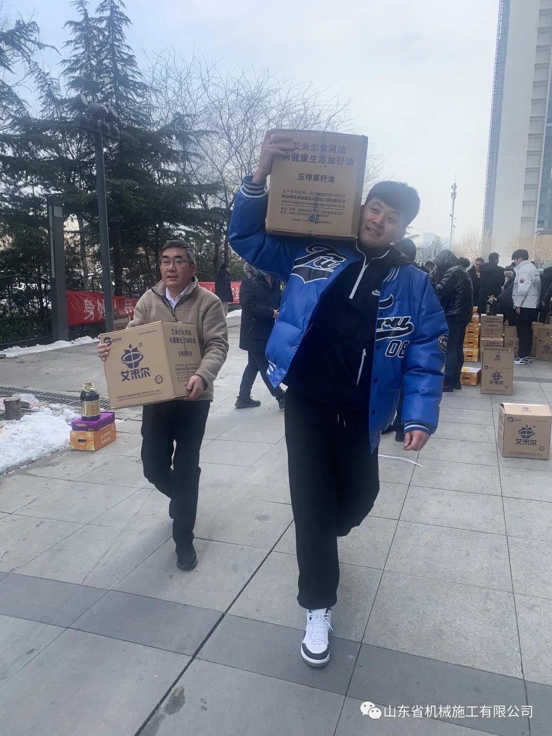 新(xīn)春臨近,為感謝全體員工一年來的努力付出(chū)、關心職工生活(huó)、讓員工開開心度過一個(gè)歡樂、祥和的春節,1月26日上午(wǔ),欧美91av省機械施工有限公司為每位員工發放了豐富的春節年貨,沉甸甸的(de)年貨給全體員工帶來了新年的氣息。