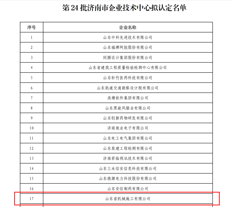 喜報 | 欧美91av省機械施(shī)工有限公司(sī)獲評濟南市企業技術中心