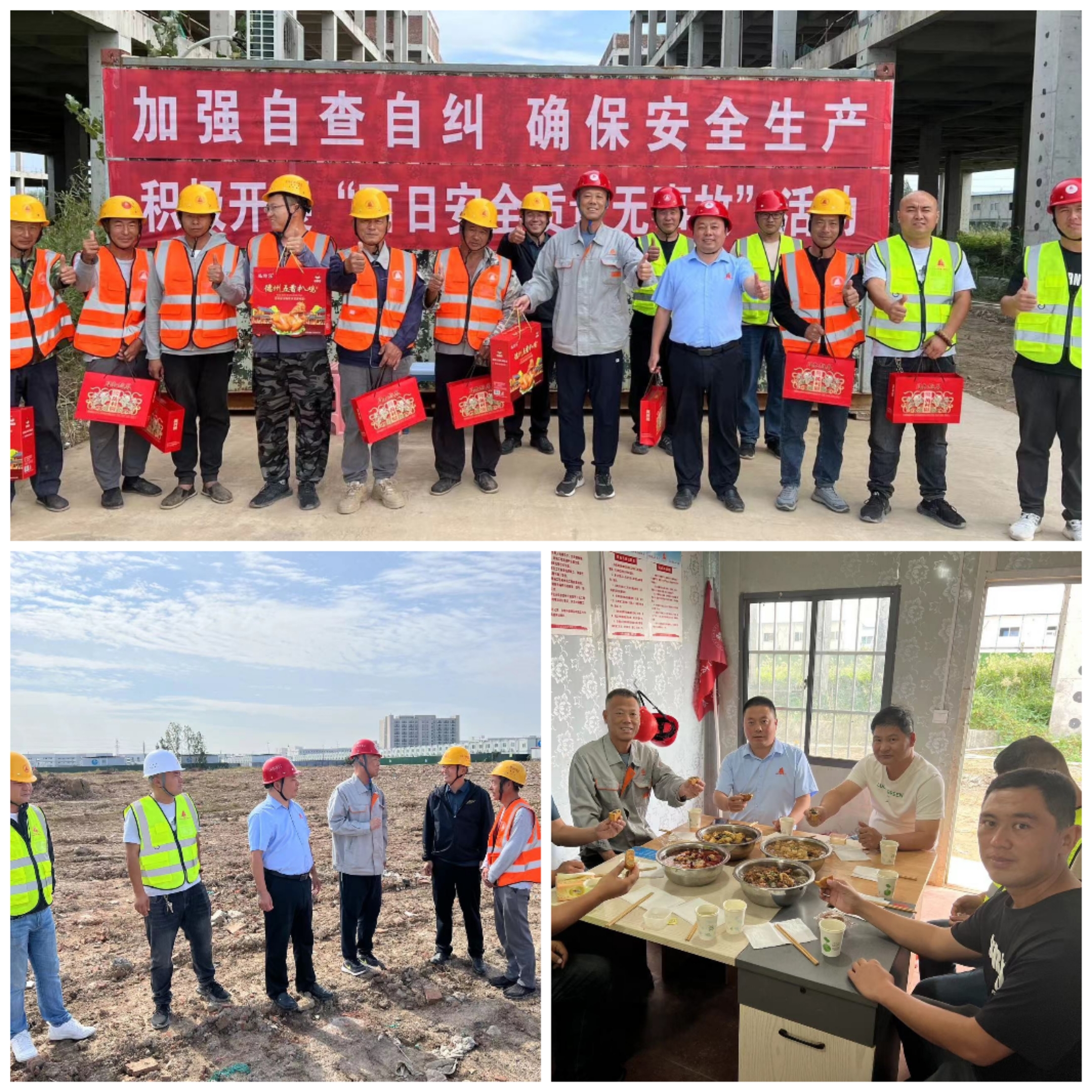 丹(dān)桂飄香時,月(yuè)圓中秋到。9.29日,農曆(lì)八月十五,在千家萬戶闔家團圓的(de)日子,帶著對堅守(shǒu)崗位職工的牽掛與祝福,公司董事長沈繽(bīn)、副董事長周廣泉、財務總監徐占全、總經理楊明、常務副總經理劉誌勳前往項目施工現場(chǎng),看望慰(wèi)問假期堅守一線的員工。